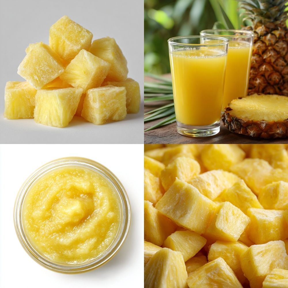- Aseptic Pineapple Purée – shelf-stable option for beverages and manufacturing